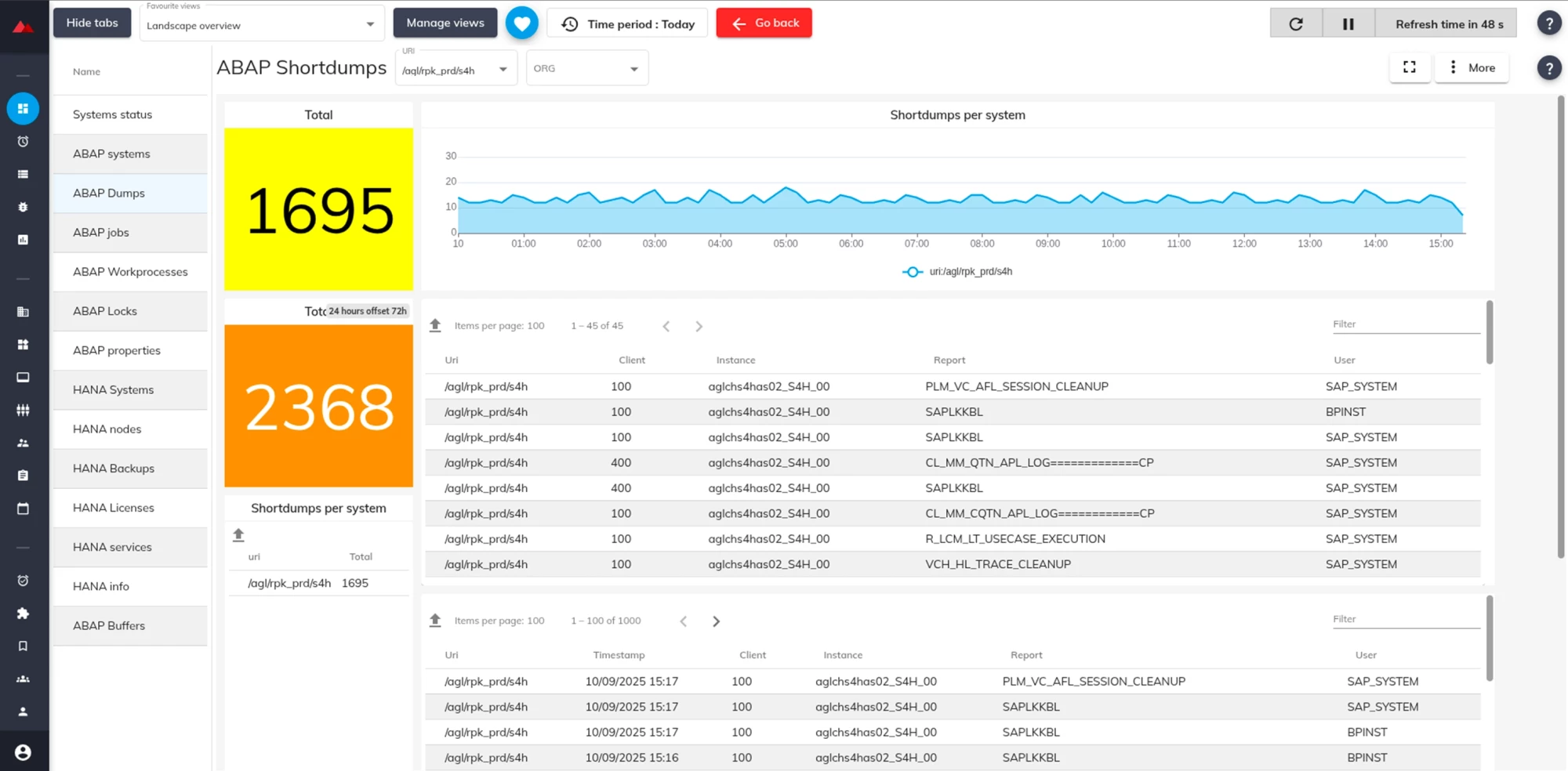 - Native Cockpit Experience: The RedPeaks Cockpit offers a centralized control center specifically for SAP operations teams — including multi-tenant views, advanced filters, and support for thousands of systems.